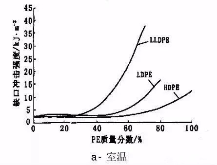 Different types of PE can improve the impact strength of PP at room temperature, but the difference is very obvious.