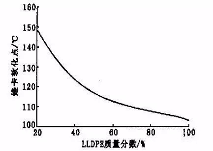 When the LLDPE mass fraction is 40%-60%, the softening point of vica is still close to 120 degrees.