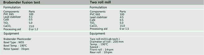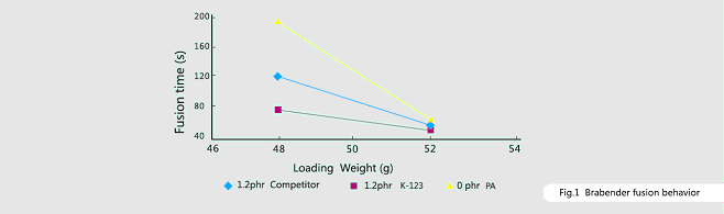 K-123 could improve greatly the PVC fusion behavior. It will make PVC fusion more uniform, further improve the output. Fig.1shows K-123 could accelerate the zsPVC fusion.